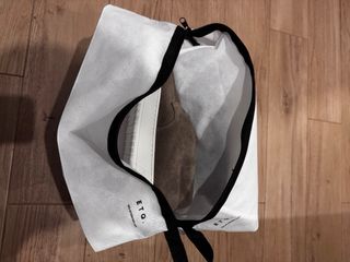 Bolsa elegante com alças pretas e corpo em tom bege. Possui um design moderno e prático. - Detalhes em preto. - Fechamento com zíper. - 3 divisões. - fita tira colo incluída como opção.