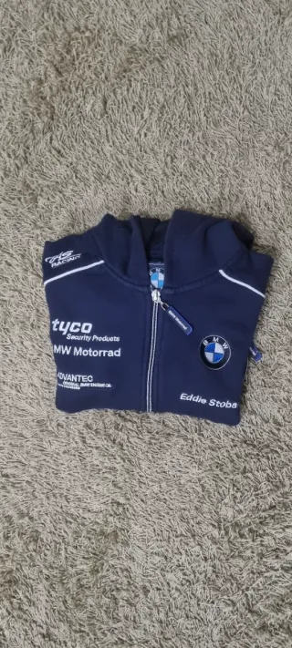 Casaco oficial da BMW Motorrad em azul. - Design com fecho completo. - Gola com capuz. - Manga comprida.