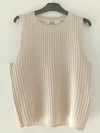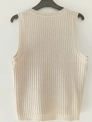 Top Tiffosi em malha canelada com um toque de brilho. - Malha canelada - Acabamento com brilho - Sem manga - Gola redonda