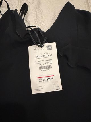Vestido preto com um design elegante e detalhes charmosos. - Tecido leve e fluido. - Detalhes em babados. - Alças finas ajustáveis.