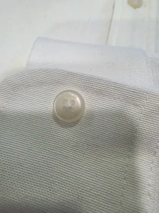 Camisa clássica da Polo Ralph Lauren em branco. Peça versátil e elegante. - Logo do cavalo bordado no peito. - Fecho de botões frontal. - Punhos com botões. - Marca M mas veste S.