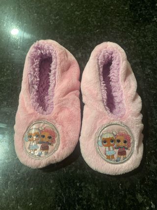 Pantufas de menina com o tema LOL Surprise, em rosa. Estão em excelente estado, como novas. - Interior forrado para maior conforto. - Aplicação frontal com duas bonecas LOL Surprise.