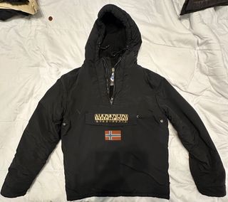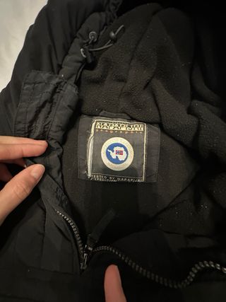 Casaco Napapijri com capuz e fecho frontal. - Bolso frontal com fecho. - Detalhe de bandeira na frente. - Mangas compridas. - Interior de Polar