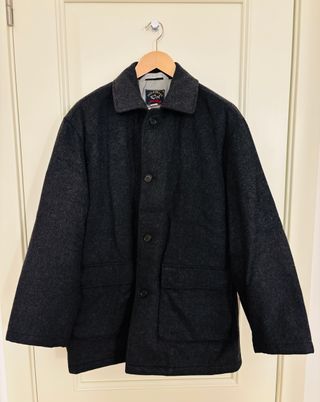 Casaco estilo duffle da Tommy Hilfiger. 70% wool. - Fecho com botões de madeira. - Bolsos frontais. - Gola com forro azul.