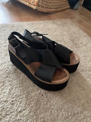 Sandálias plataforma com um design moderno e elegante. - Material: Couro - Fecho com fivela ajustável - Sola plataforma robusta