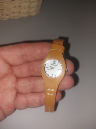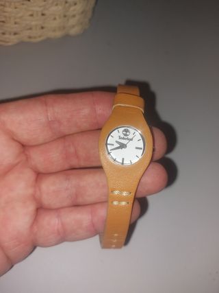 Relógio Timberland feminino, com caixa em aço e bracelete em pele castanha. Apresenta-se em excelente estado. - Mostrador branco. - Design elegante e discreto.