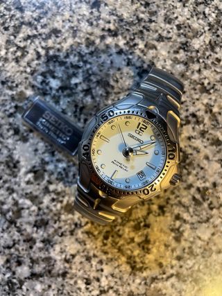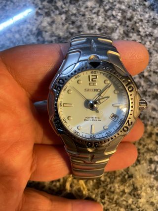 Relógio Seiko Kinetic Auto Relay em excelente estado. Relógio elegante e desportivo, perfeito para o dia a dia. Relógio de excelência como novo e de qualidade de topo, para quem conhece sabe do que falo, novo custou 500 euros. Raro de encontrar, principalmente neste estado de conservação e por este preço. - Modelo Kinetic Auto Relay. - Caixa em titânio. - Mostrador branco perolado.