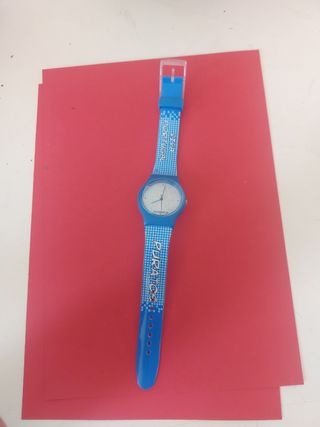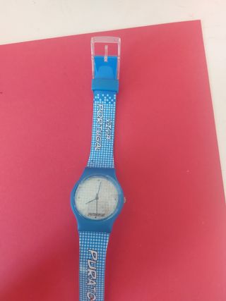 Relógio de pulso em bom estado. - Modelo desportivo. - Mostrador branco. - Pulseira de silicone com padrão pixelado. - Marca: (não visível na imagem)