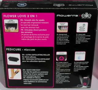 Depiladora Eletrica Rowenta Flower Love Elite 2 in 1 Limited Edition - The 2 in 1 Solution For Long-lasting Smooth Legs and Soft feet - Ultra Efficient on Very short hair <0,5mm - Massage beads to reduce skin sensitivity when plucking the hair. - Easy to use pedicure acessory. - Ultra-Exfoliating Roller for thick calluses. NOVO e SELADO