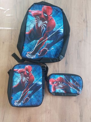 Conjunto escolar temático do Homem-Aranha, impecável! Inclui mochila, lancheira e estojo. - Mochila com alças ajustáveis. - Lancheira com alça transversal. - Estojo com fecho de correr. - Perfeito para fãs do herói.