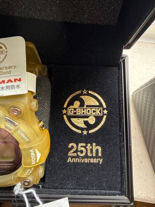 Edição especial do relógio G-Shock Frogman, comemorativa do 25º aniversário. - Modelo: GW-225E-7JF - Design temático Glorious Gold - Caixa e pulseira em tom dourado/amarelado translúcido - Embalagem especial de colecionador