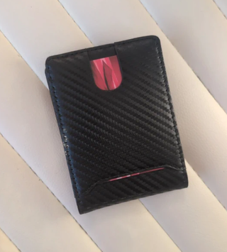 Carteira porta cartões com um design moderno e elegante. Extremamente fina com 12 compartimentos - Material com textura a imitar de fibra de carbono. - Inclui bloqueio RFID para segurança. - Com clip para bilhetes ou notas