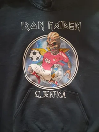 Hoodie com design exclusivo da banda Iron Maiden e do clube SL Benfica. - Estampa frontal com Eddie a jogar futebol. - Logo do SL Benfica. - Número 666 na camisola.