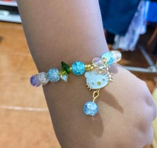 Pulseira com medalhinha hello kitty para criança dos 5 aos 9 anos