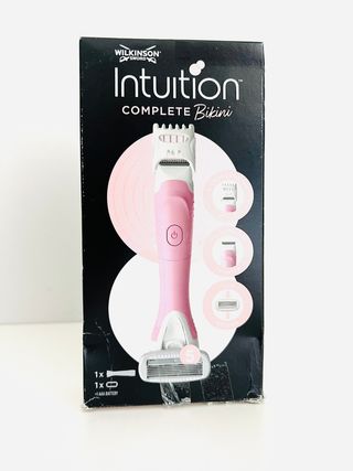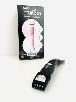 Máquina de barbear Wilkinson Sword multifunções, usada em bom estado, com caixa. - Cabeça com 5 lâminas - Faixas de gel protetoras - Adequada para várias zonas - Design feminino em rosa claro