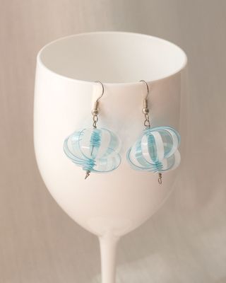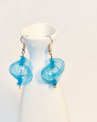 Estes brincos apresentam um design em espiral com um toque de cor. - Combinação de azul turquesa e branco. - Fecho de anzol para fácil uso.