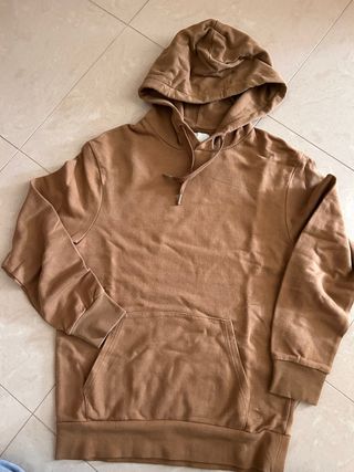 Casaco com capuz da Springfield em tom castanho. Peça confortável e versátil. - Tecido macio ao toque. - Capuz ajustável com cordão. - Bolso frontal tipo canguru.