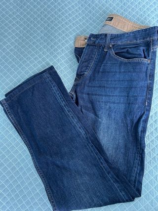 Calça de ganga Tiffosi modelo Brody para homem. - Cor azul - Tecido de ganga - Detalhe em pele no bolso - Cintura em bombazina