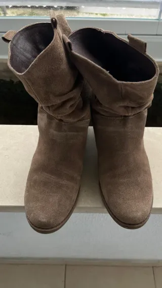 Botas de senhora em pele, com um design moderno e casual. - Material: Pele - Cor: Castanho - Tamanho: 39