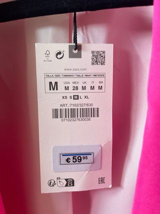 Casaco Zara Rosa Tamanho M Novo nunca utilizado
