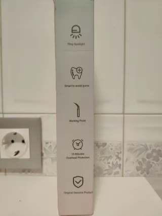 Aparelho ultrassónico de limpeza dentária para uso doméstico. Ajuda a remover a placa bacteriana e o tártaro dos dentes. Funciona através de vibrações de alta frequência que ajudam a quebrar o tártaro e a placa bacteriana. É frequentemente utilizado como complemento à escovagem regular, para uma limpeza mais profunda. Embora seja uma ferramenta útil, não substitui as limpezas profissionais realizadas por um dentista. O uso deste tipo de aparelho requer cuidado para evitar danos ao esmalte dentário e às gengivas Artigo Novo