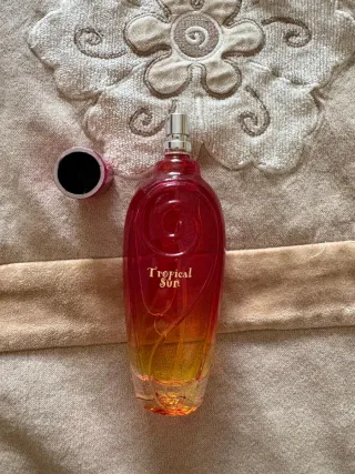 Fragrância Tropical Sun em frasco de 100ml. - Design do frasco com gradiente de cores vibrantes. - Detalhes em relevo no vidro.