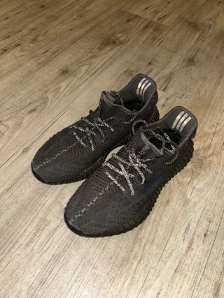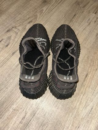 Tênis Adidas Yeezy Boost 350 V2 na cor cinza. Design moderno e confortável. - Sola suja só, de resto em muito bom estado. - Detalhes refletivos nos cadarços. - Solado de borracha. - Três listras icônicas na parte traseira.
