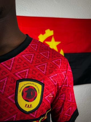 Camisola oficial da seleção de Angola. - Design com padrão geométrico. - Detalhes em preto e amarelo na barra. - Escudo da federação no peito.