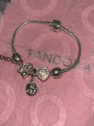 Linda pulseira Pandora com vários charms. - Design elegante e versátil.