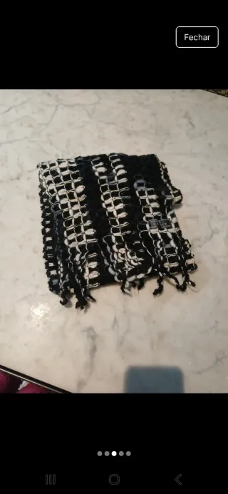 Cachecol preto e branco 14% lã e 86% acrílico. Muito confortável e quente. Em perfeito estado. Fabricado em Itália.