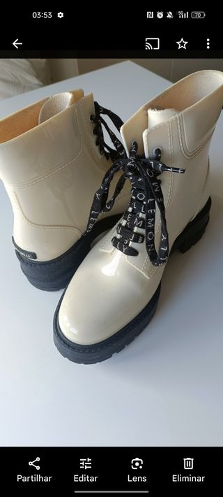 Botas/botins pouco usadas. Cor bege/creme, sola preta. Tamanho 37. Muito confortáveis e impermeáveis. Negociável. Qualquer questão disponha!
