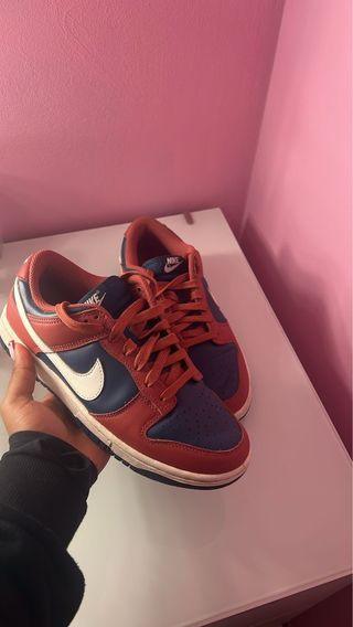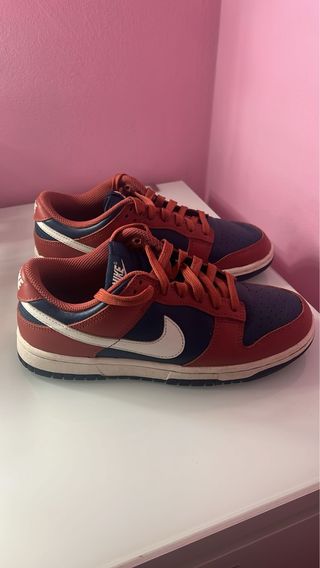 Tênis Nike Dunk em bom estado. - Combinação de cores azul e vermelho. - Design clássico. - Cadarços na cor vermelha.