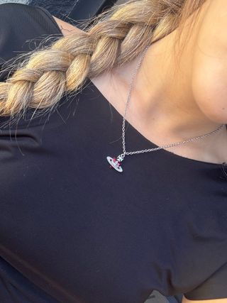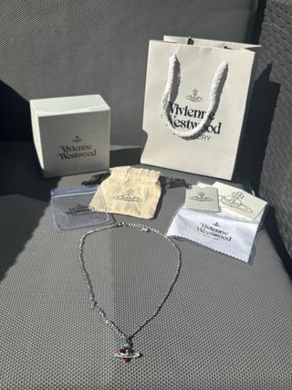 Colar Vivienne Westwood com o icónico pendente Orb. - Detalhes em vermelho e prateado. - Design elegante e distinto. - Vem com saco, caixa, certificado de autenticidade e dust bag - Preço negociável