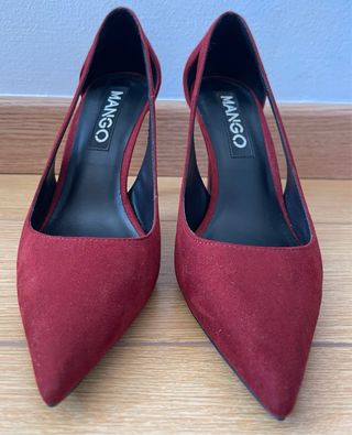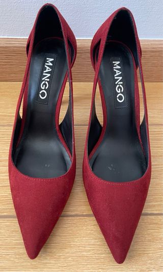 Elegantes sapatos de salto alto da Mango, em tamanho 36 e cor vermelha. - Material em camurça. - Biqueira fina. - Usado 1/2 vezes