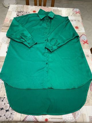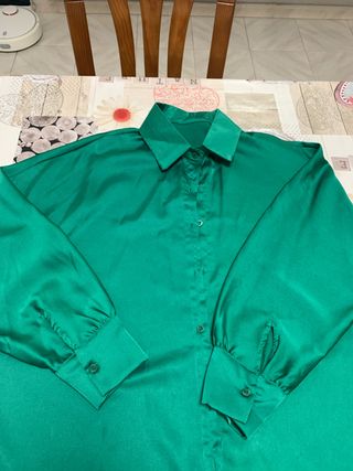 Camisa elegante em cetim com um corte moderno e confortável. - Tecido acetinado com brilho. - Mangas compridas com punhos abotoados. - Fecho de botões frontal.
