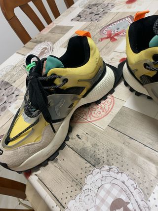 Tênis com um design moderno e vibrante, perfeitos para adicionar um toque de cor ao seu visual. - Combinação de cores alegres. - Cadarços pretos com detalhes. - Sola robusta e confortável.