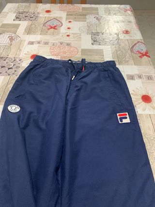 Calças de fato de treino da Fila em azul. - Cintura com cordão ajustável. - Bolsos laterais. - Punhos elásticos nas pernas.