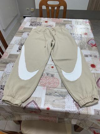 Calças de fato de treino Nike com um design moderno. - Cor bege com detalhe de swoosh branco. - Cintura com cordão para ajuste.
