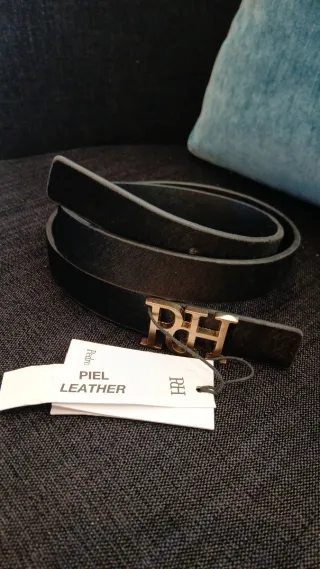 Cinto elegante em pele genuína. - Fivela dourada com logo. - Acabamento em pele. - Design clássico. - Tamanho S. - Largura 3cm. - Preço de compra 99.90€