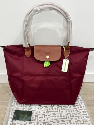 Mala Longchamp tamanho L, em cor de vinho, nova e nunca usada. Ainda com etiquetas. - Material em nylon. - Detalhes em pele. - Fecho de correr.