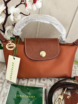 Mala Longchamp Le Pliage Mini Pouch nunca usada Cor Conhaque, com detalhes em dourado Envios rápidos