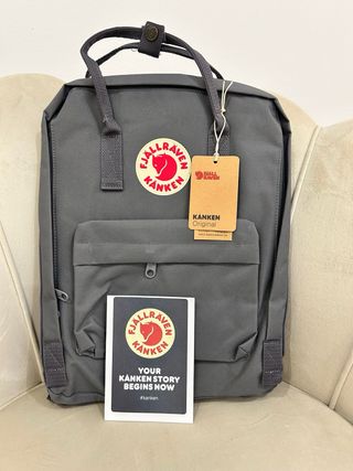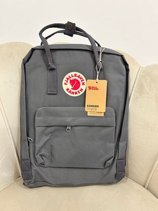 Mochila Fjällräven Kanken Original em cinza, com etiquetas. - Design clássico e versátil. - Capacidade 16Litros - Material resistente e durável. - Alças ajustáveis para maior conforto.