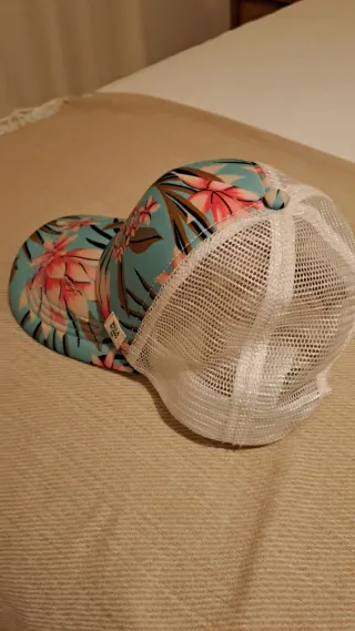 Boné da marca Billabong com um design floral vibrante. Possui uma parte traseira em rede branca para ventilação. - Estampa floral colorida. - Aba curva. - Fecho ajustável na parte traseira.
