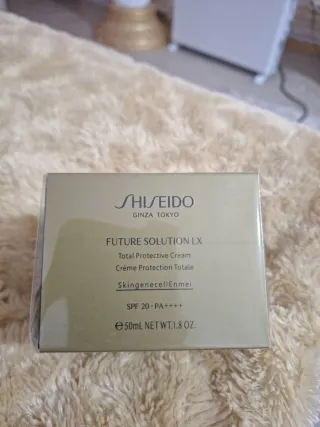 Creme protetor da Shiseido, linha Future Solution LX. - Creme de proteção total. - Contém SPF 20 e PA++++. - Volume: 50mL NET WT.1.8 OZ.