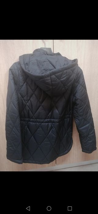Casaco acolchoado com capuz. - Fecho frontal completo. - Bolsos laterais com fecho. - Logo da marca no peito.