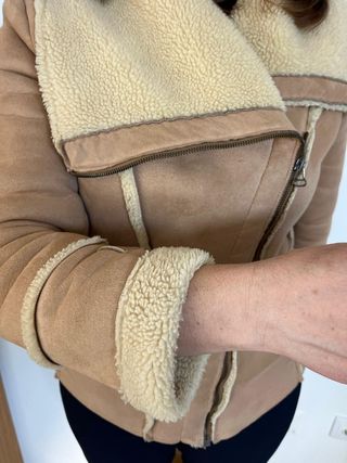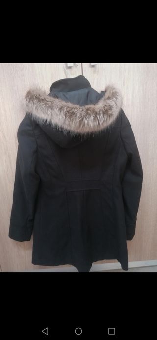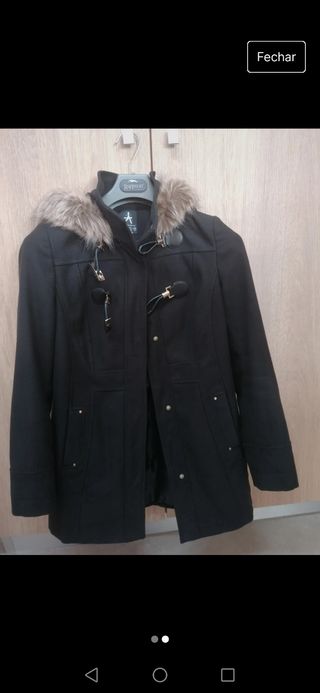 Casaco quente com capuz e pelo. - Fecho de correr frontal. - Bolsos com fecho. - Detalhe de logo no peito.