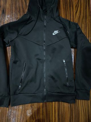 Casaco de treino Nike com fecho completo e capuz. - Logo Nike bordado no peito. - Bolsos laterais com fecho. - Punhos e cintura canelados.