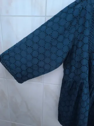Túnica com um padrão de bordado intrincado e um corte levemente evasê. - Tecido leve e arejado. - Detalhes em renda nas mangas e na barra. - Fecho nas costas.