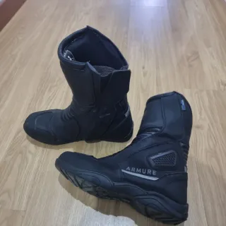 Botas de moto Armure Mack em preto. - Design robusto e protetor. - Fecho lateral para ajuste. - Detalhes de ventilação.