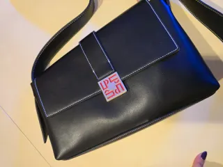 Mala preta com fecho e alça. - Detalhe metálico com logo. - Costura branca contrastante. Nunca usada e com etiqueta
